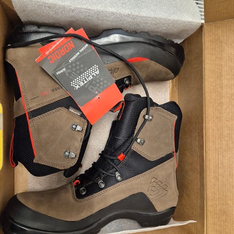 Kängorna har använts till två skidturer, men passade tyvärr inte mina fötter. Nyskick, aldrig blivit smorda.
