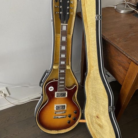 Westbury Deluxe japansk tillverkad 70-80 talet. Dimarizo humbucker splitbar switch. Superbra skick inga skador alls. Fungerar precis hur den ska. Lätt spelat låg action. Inga brumm eller brus. Original hardcase följer med.