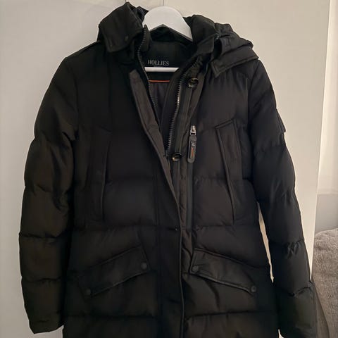 Hollister vinterjacka i storlek 38 för kvinnor. Jackan är svart och har pälsdetaljer. Designad för att ge värme och skydd under kalla förhållanden.