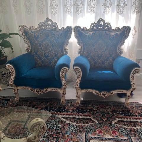 Möbelgruppen står just nu i min praktik, men tar tyvärr lite för mycket plats där. Jag väljer därför att ersätta den med stolar – inte för att den saknar kvalitet, utan helt enkelt av praktiska skäl.