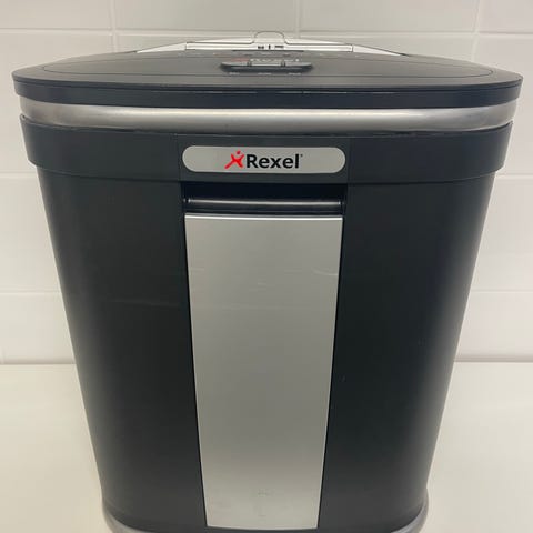 Rexel Shredder pappersförstörare i svart färg. Kompakt design för kontorsbruk med möjlighet att förstöra papper effektivt.