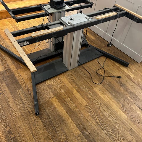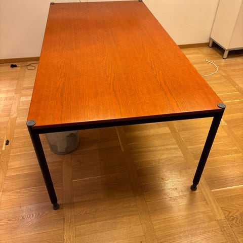Höj- och sänkbart skrivbord. Fint skick. Listen runt borden har lossnat lite.