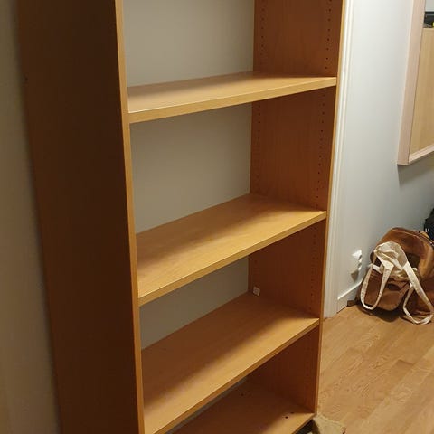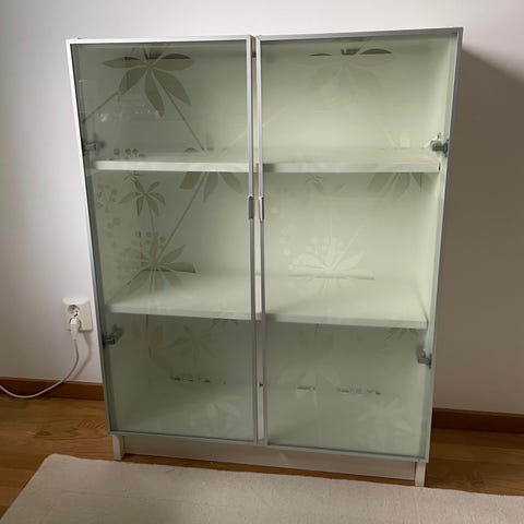 Ikea BILLY bokhylla, 80x30x202 cm med dörrar (OXBERG). Köptes som ny 2020, är i okej skick utöver en fläck på bakdelen (se bild). Knopparna är utbytta men originalknopparna finns att få med om så önskas.