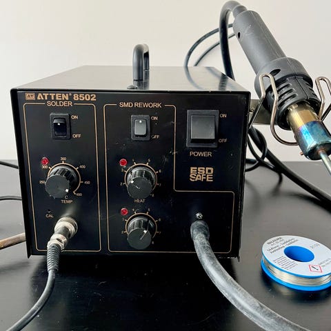 Velleman lödstation med lödkolv och hållare. Används för lödning av elektronik och andra små komponenter. Utrustad med temperaturkontroll och en hållare för lödkolven.
