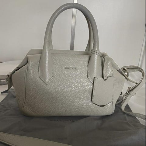 Tillverkad i läder med Balenciagas karaktäristiska logotyp framtill. Kan bäras i handtaget eller med axelrem. Är oanvänd och kommer i orginal boxen.