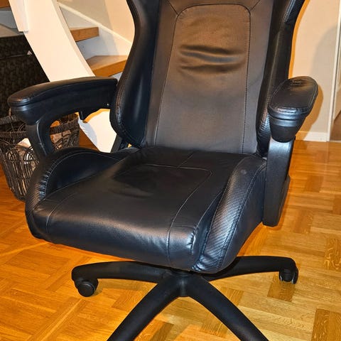 Gaming datorstol L33T med sina två kuddar, svart/grönt i mycket bra skick