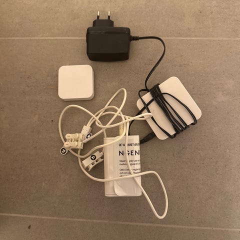 Ngenic Tune består av två vita dosor som tillsammans samlar in information om väder, innetemperatur, utetemperatur, luftfuktighet och solljus.