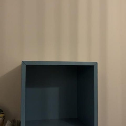 Fin ljus hylla uppdelad i 4 separata kubhyllor som kan placeras hur man vill. Enstaka repor finns men är inte särskilt synliga och döljs om man staplar dem.