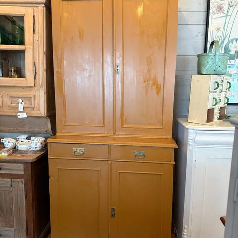Antikt vackert väggskåp/vitrinskåp med gammalt glas i dörrarna
