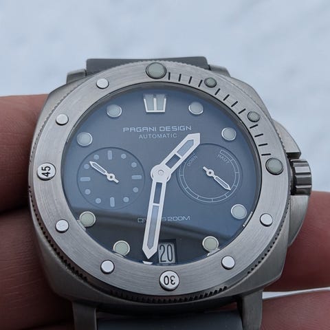Ett måste om man kör Lamborghini.Tyvärr hade jag inte råd själv så jag avyttrar klockan istället. Swiss Made Automatic Sellita SW200-1 Movement med 26 juveler, 28,800 bph, 4Hz, Power Reserve på 38 timmar. 42mm x 12mm svart DLC titanfodral med Satinfinish. Antireflekterande safirglas. Skruva ner krona, dubbel tätning, Titankrona. Dubbelriktad svart Titanram med applicerade kullager. Svart monokrom urtavla med blå detaljer och lysande visare och markörer i rostfritt stål. Tonino Lamborghini Shield vid 12-tiden. Datumfönster vid 6-tiden 22mm x 20cm Med Svart italiensk Läder armband samt att det följer med ett band i Gummi med Logga. Fullt set med inner och ytterbox samt tag och registrerings kort.