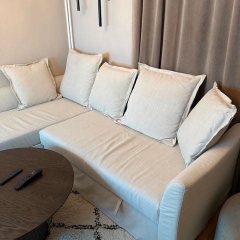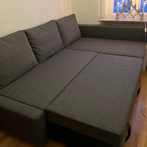 Säljer en IKEA hörnbäddsoffa med schäslong.