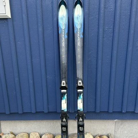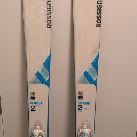 Rossignol Hero skidor med bindningar. Skidorna är röda och svarta med märkets logotyp. De är avsedda för alpin skidåkning och har en design som passar för prestanda på pist.