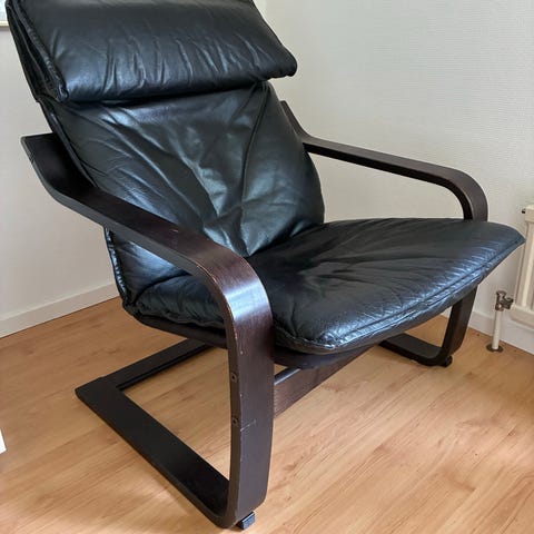 Två Ikea Poäng fåtöljer i skinn. Fint använt skick. 700kr/st eller båda för 1000kr.