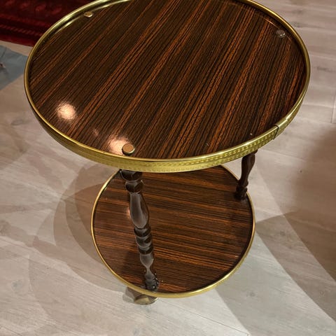 Ett mycket fint sidobord barbord eller blomsterbord med löstagbar bricka i metall. Diametern är 53 cm och höjden 63 cm