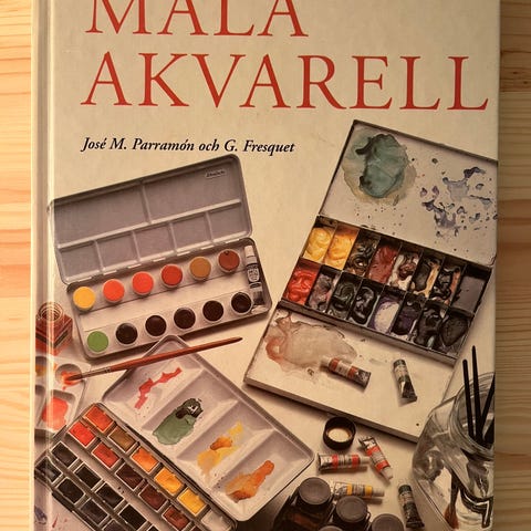 Böcker papper penslar och färger . Allting man kan behöva for att måla akvarell. Paketpris