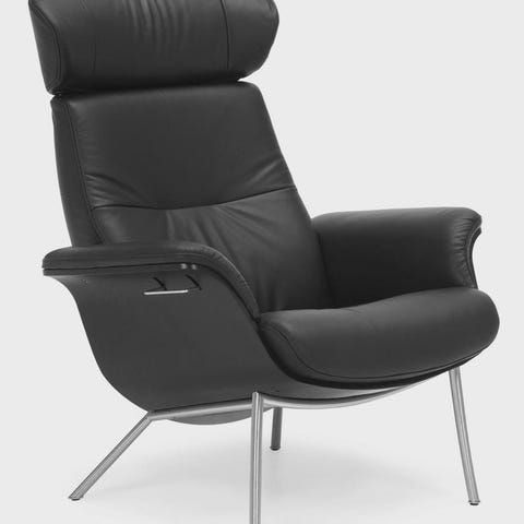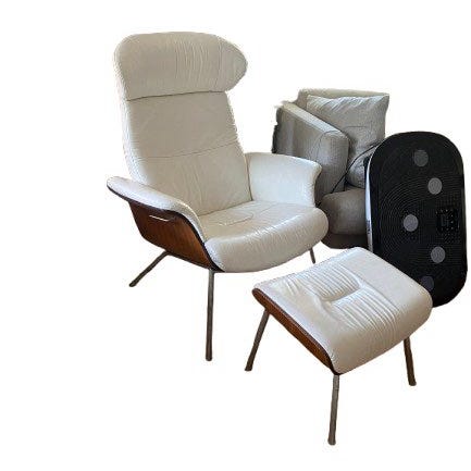 Timeout fåtölj från MIO i läder med tillhörande fotpall