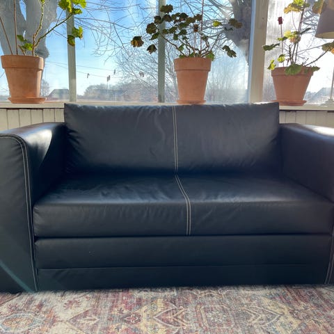 Välbevarad röd klädsel till 2-sits bäddsoffa BACKABRO IKEA.