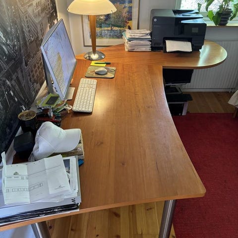 Skrivbordet kan delas i flera sektioner så det är lätt att transportera.