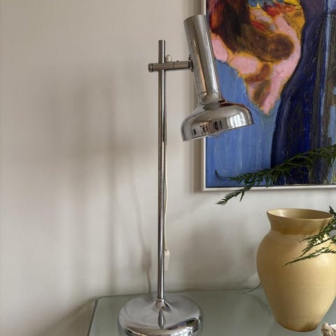Mått: Höjd 50 cm och diameter 35 cm. Glödlampan är 5W LED och har dimmer-funktion. CE-Märkt