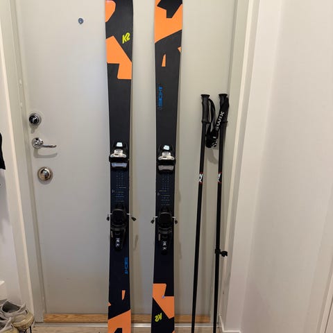 Sälier ett par klassiska K2 Public Enemy twintip-skidor med Marker 12-bindningar Perfekta som park-/lek-skidor, för ungdom, nyböriare eller for dig som vill ha ett par slitstarka extras skidor.
