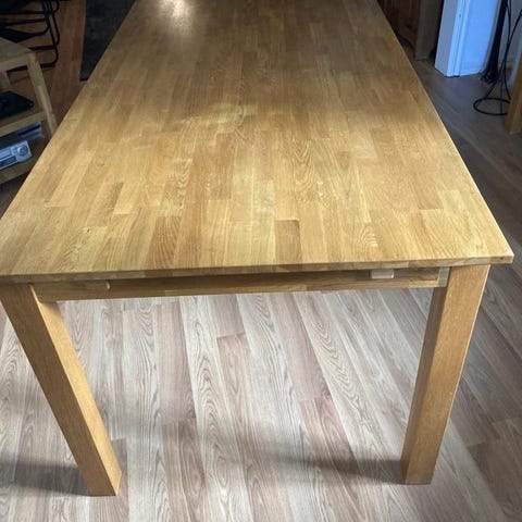 Fint Ekliden matbord med 8 stolar. Finns även 2st tilläggsskivor på 50cm st. Så total längd kan bli 340 cm.