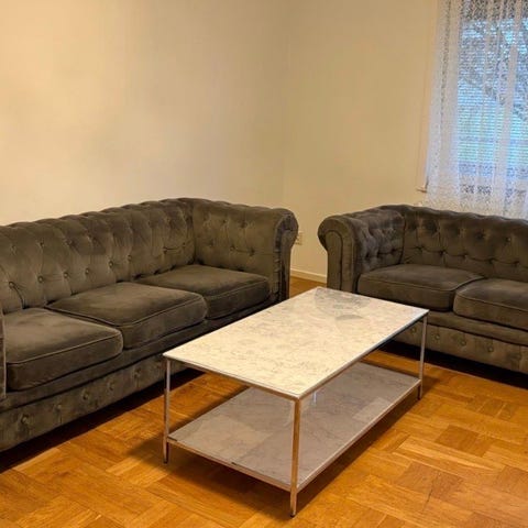 Äldre tygsoffor i använt men okej skick. 1 st 3-sits och 2 st 2-sits.