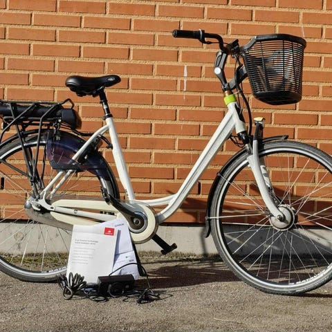 5 lägen på elen, beroende på hur fort man vill att det går. Fram och bakbelysning finns även på cykeln. Motorn sitter i framhjulet för extra bra drift.