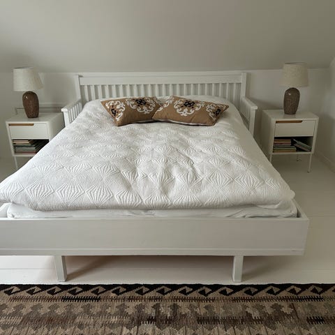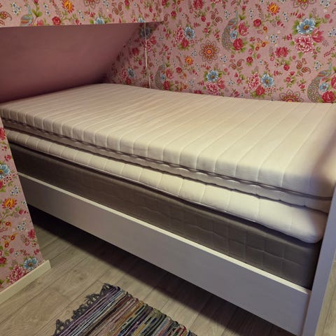Fri höjd under sängen: 27 cm – gott om plats för att robotdammsugaren ska komma in under.