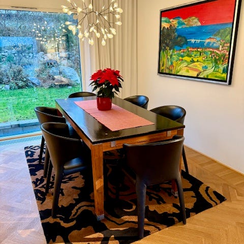 Ett fantastiskt bra matbord, om man söker ett smalt o långt bord, går att sitta 12 pers.