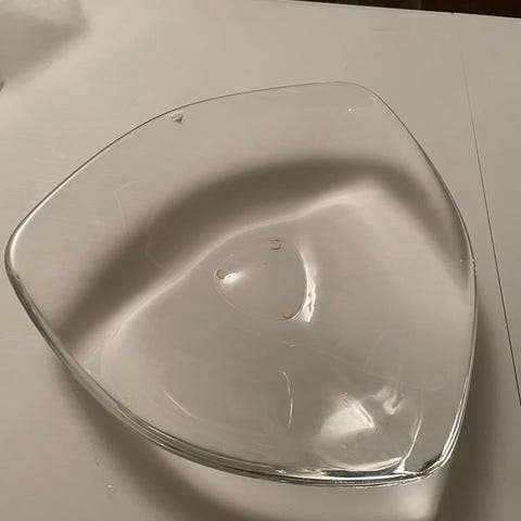Ett vackert fat, 31 cm i diameter. Fint att lägga upp frukt, glass eller liknande på. Kanten är lite upphöjd så inget rinner ut på duken.