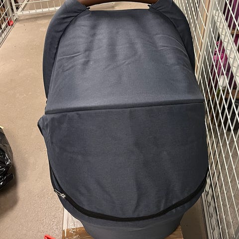 Sittdelen är i fint, men använt skick, och liggdelen i väldigt fint skick och chassit (Britax 5Z) är helt oanvänt (se separat bild). Något solblekt sufflett.