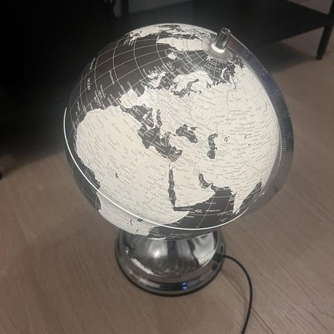 Äldre jordglob med belysning. Troligen 60-tal. Ett par små skador på globen.