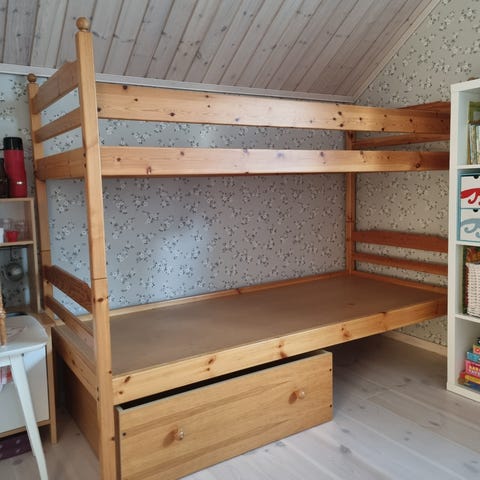 Övre säng 80 cm bred . Helt ok skick dock lite skav på färg här och var . Finns att hämta i Mellanbyn Hudiksvall .