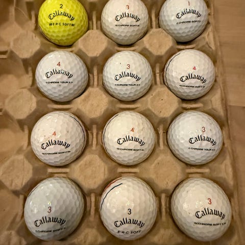 Ett dussin Triple track golfbollar från Callaway. Inkluderar både Chrome Soft, Chrome soft x, Chrome tour x och E.R.C Soft. Perfekt för golfrundan!