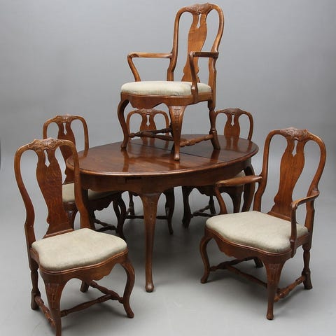 Matsalsgrupp i valnöt/vanötsrot Rokoko