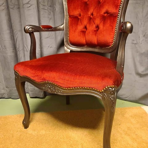 Det ena armstödet behöver lite lim enligt bild.