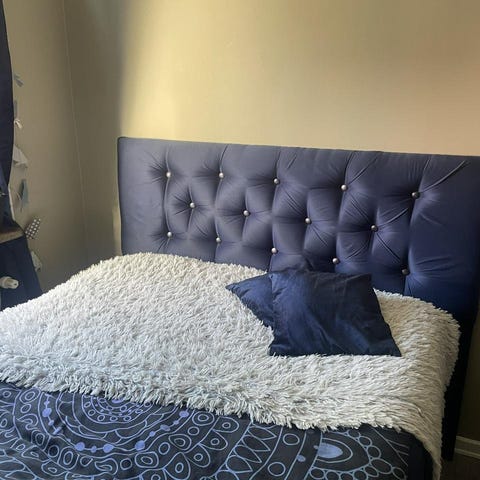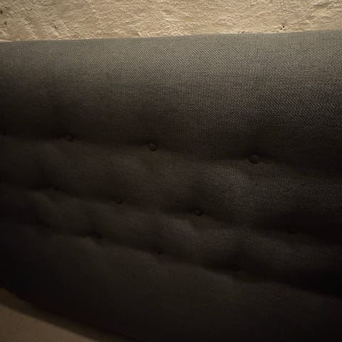Mio sänggavel i grått tyg med knappdetaljer. Passar som huvudgavel till sängar och ger stöd samt en estetisk funktion i sovrummet. Till 180 säng. Tvättad med möbeltvätt.