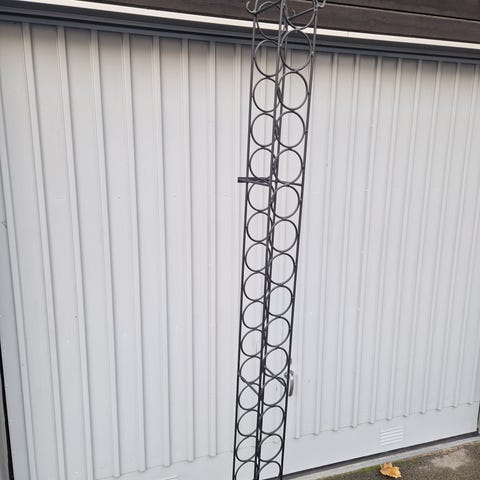 Vägghängt vinställ i metall för 6 flaskor. Hämtas i Krokek (alt centrala Linköping).