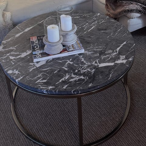 Vitt äkta marmorbord, finns att hämta i Borås