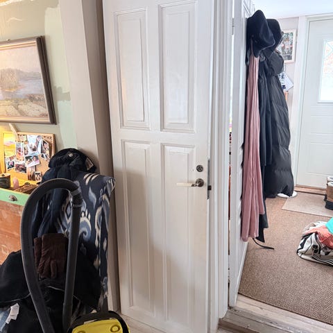 WB Trä Innerdörr tillverkad av trä, utrustad med lås och handtag. Dörren är gråmålad och passar för inomhusbruk. Levereras med beslag. Passar för standard innerdörrsöppningar.