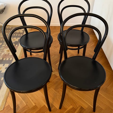 2 stycken No 14 Matstol, Svart / Rotting från TON. Inköpt på Royal design för 4 965 kr. Mycket fint skick, inga skador. Säljs för 3000kr/styck.