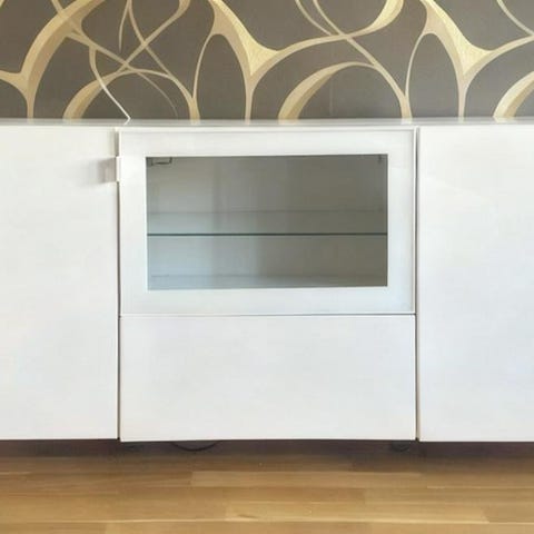 Välvårdad bokhylla med belysning. Plockas ner och hämtas av köpare