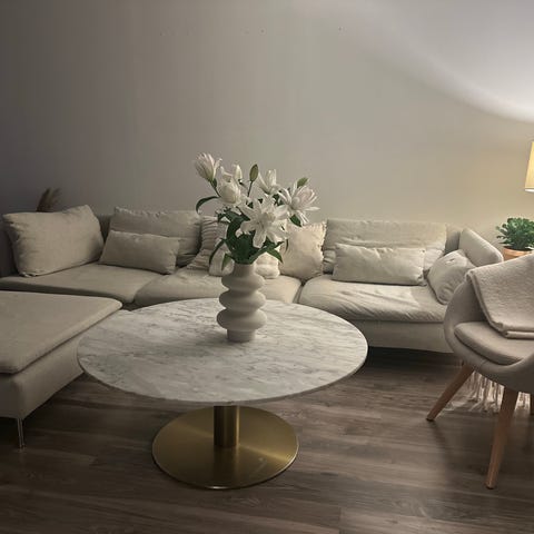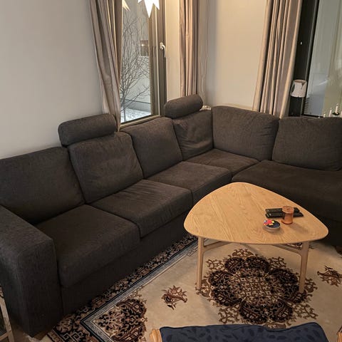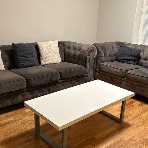 Soffa och soffbord från Mio. Soffan har tvättbara kuddar.