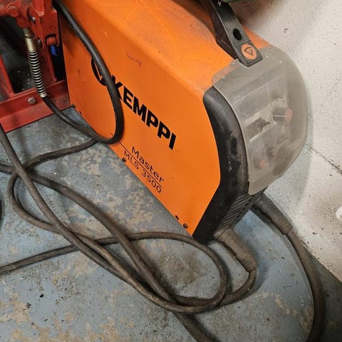 Kemppi Christer Kempomat 2500 är en svetsmaskin med modell Kempomat 2500. Maskinen är utrustad med kablar och handtag för svetsning. Den är avsedd för professionellt bruk inom svetsning. Inkl. liten gastub och rulle. Fungerar som den ska.
