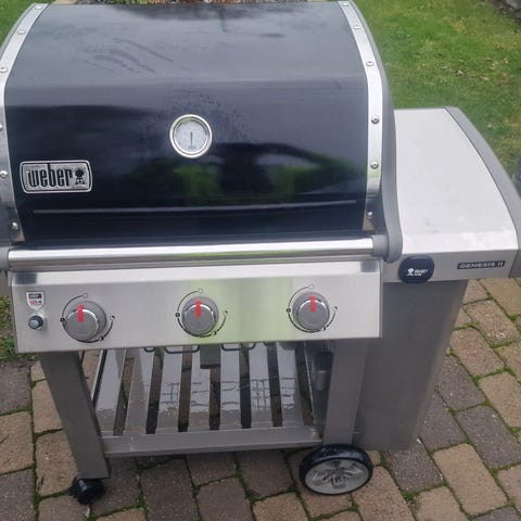 Weber Spirit E-310 (gasgrill) med dubbla sidobord, elektronisk tändning. 3 brännare och 5 brännareskydd. 99% rengjort. Omgående försäljning
