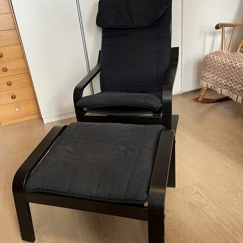 Säljer poäng fotölj med tillhörande fotpall, finns i Rissne