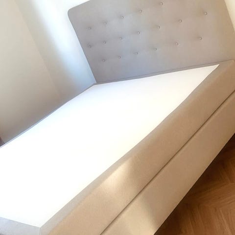 Sängen är av typen New York från Mio med förvaring under. Inköpt 2021 för 20.000.