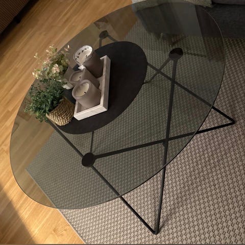 IKEA Aage Petersen runt bord med vit bordsskiva och metallben. Bordet har en rund form och är lämpligt för olika inomhusmiljöer.