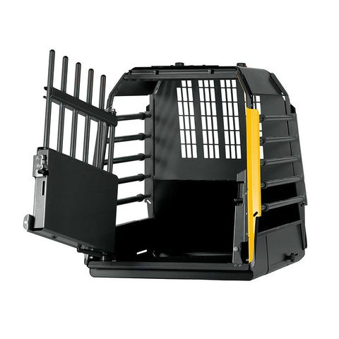 MIM Variocage Single Compact är en säker och mycket praktisk transportbur, som också lämnar plats för annat bagage. Compact-modellen passar bilar som har en tröskel längst bak i bagageutrymmet.