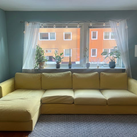 Soffa Kivik från Ikea, köpt för ca 1 år sedan. I fint skick men katt finnes i hemmet så några märken finns (se bild). Klädseln är avtagbar och går att tvätta. Finns i Munkebäck. Ta med bärhjälp.